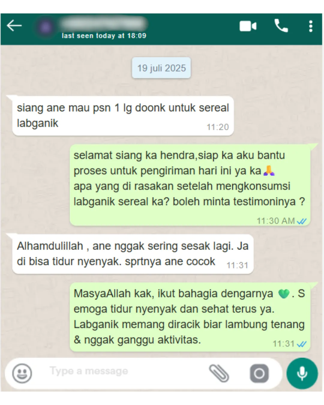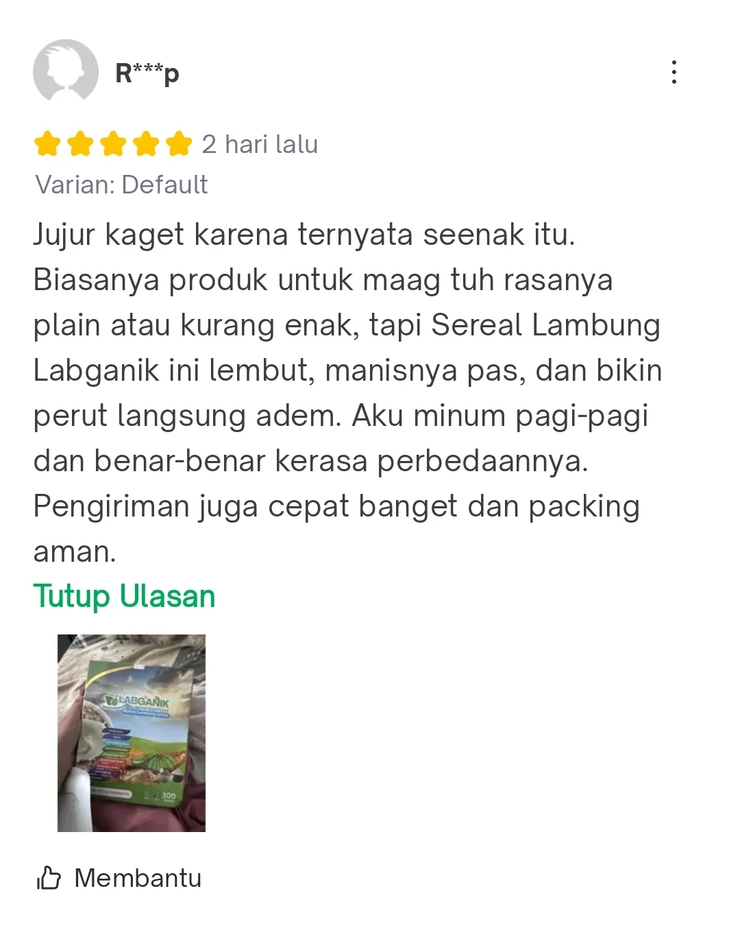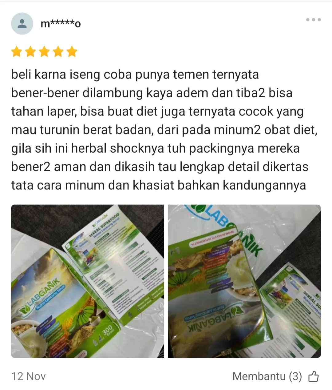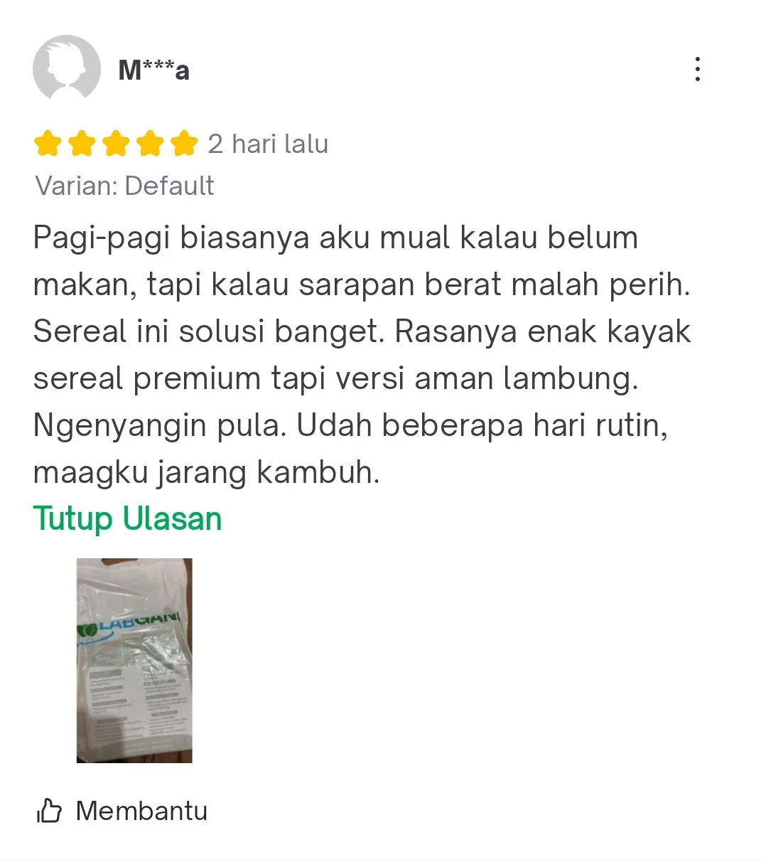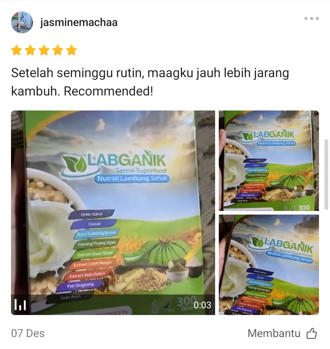 “Sebagai pecinta kopi, aku dulu sering banget nyesel setelah ngopi karena lambung langsung perih. Baru 1 minggu kosumsi Labganik Sereal Superfood Lambung Sehat, aku bisa ngopi lagi tanpa takut! Rasanya enak, bikin kenyang, dan perut tetap aman. Wajib banget buat yang suka kopi!”