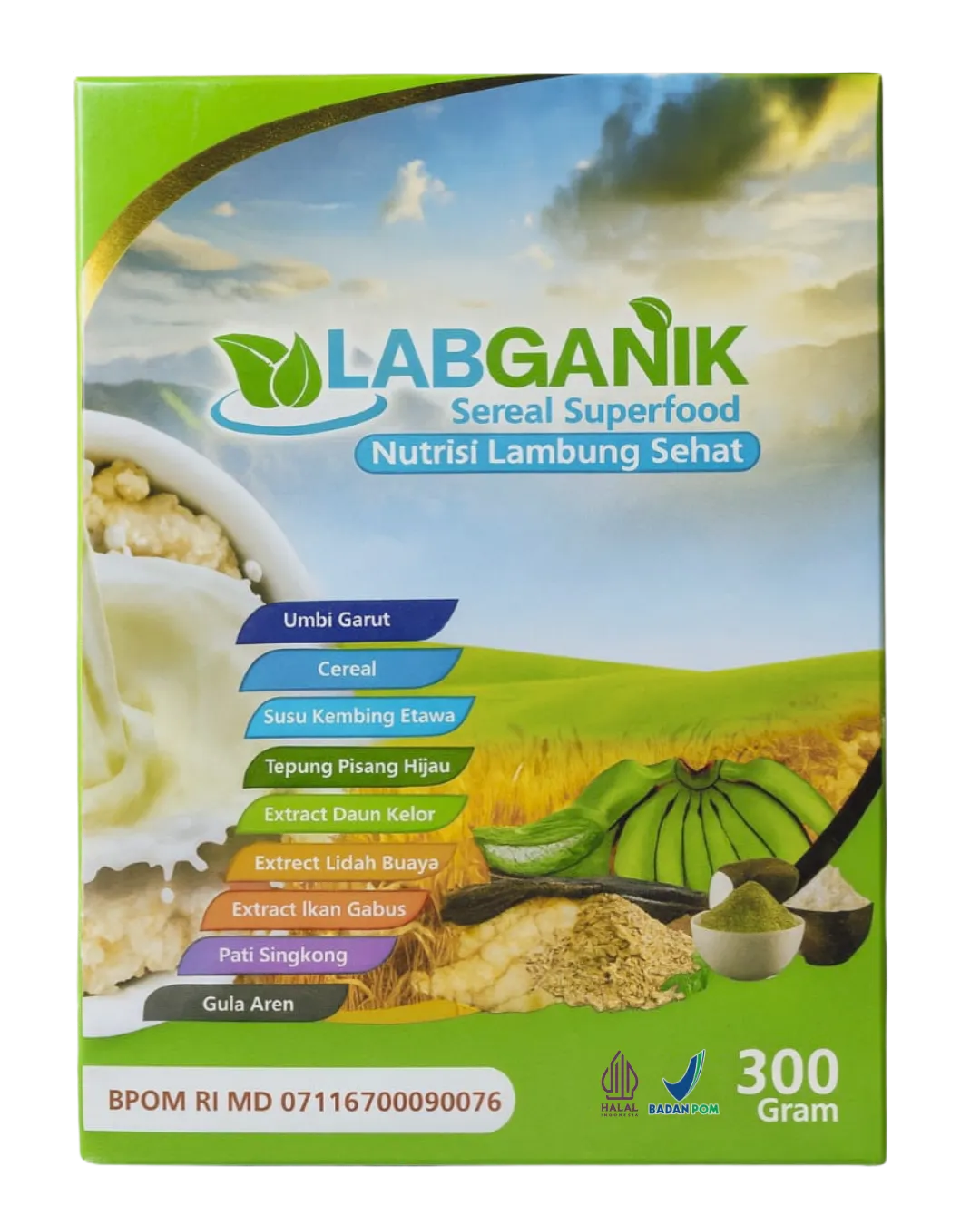 Semua nutrisi lengkap ini ada dalam 1 box Labganik Sereal Superfood kombinasi Umbi Garut, Tepung Pisang Hijau, Susu Kambing Etawa, Ekstrak Daun Kelor, Ekstrak Lidah Buaya, Ekstrak Ikan Gabus, serta bahan pendukung lainnya. Praktis untuk bantu jaga kenyamanan lambung dan pencernaan harian, sekaligus bikin kenyang lebih stabil dan badan tetap bertenaga.